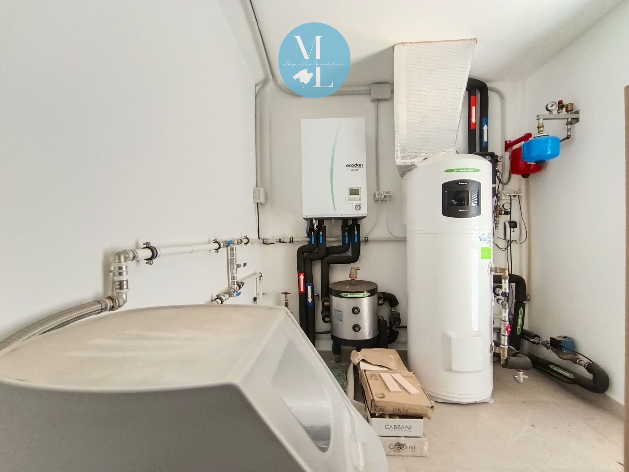 Für ganzjährigen Wohnkomfort sorgen eine Fußbodenheizung mit moderner Wärmepumpe sowie eine zusätzliche Klimaanlage mit Wärmepumpenfunktion. Ein intelligentes Hausautomatisierungssystem steuert effizient das Raumklima. Hochwertige Natursteinfliesen im Format 60 x 60 cm sowie handgefertigte Eichenleisten aus Frankreich unterstreichen den exklusiven Charakter der Immobilie.