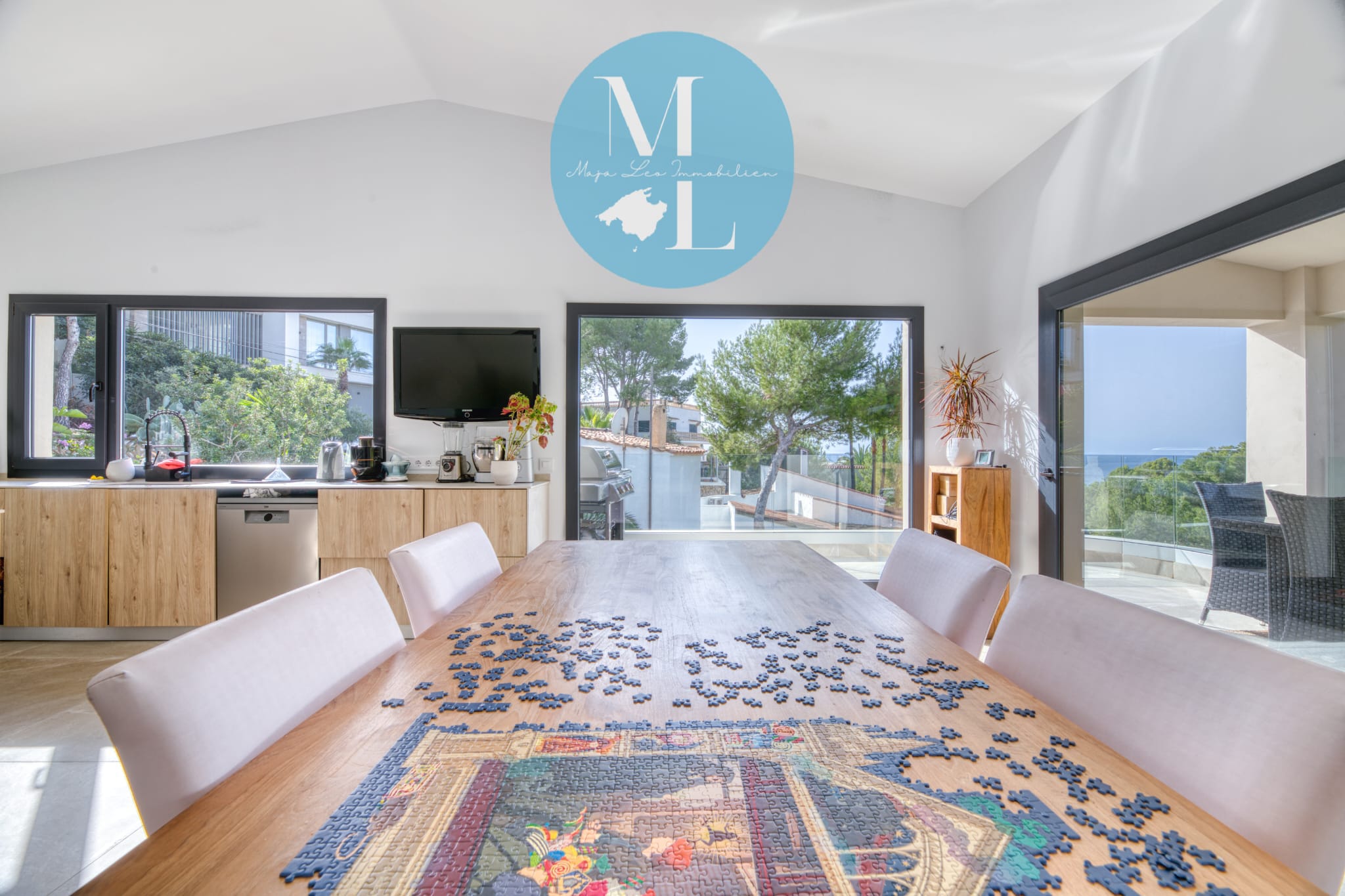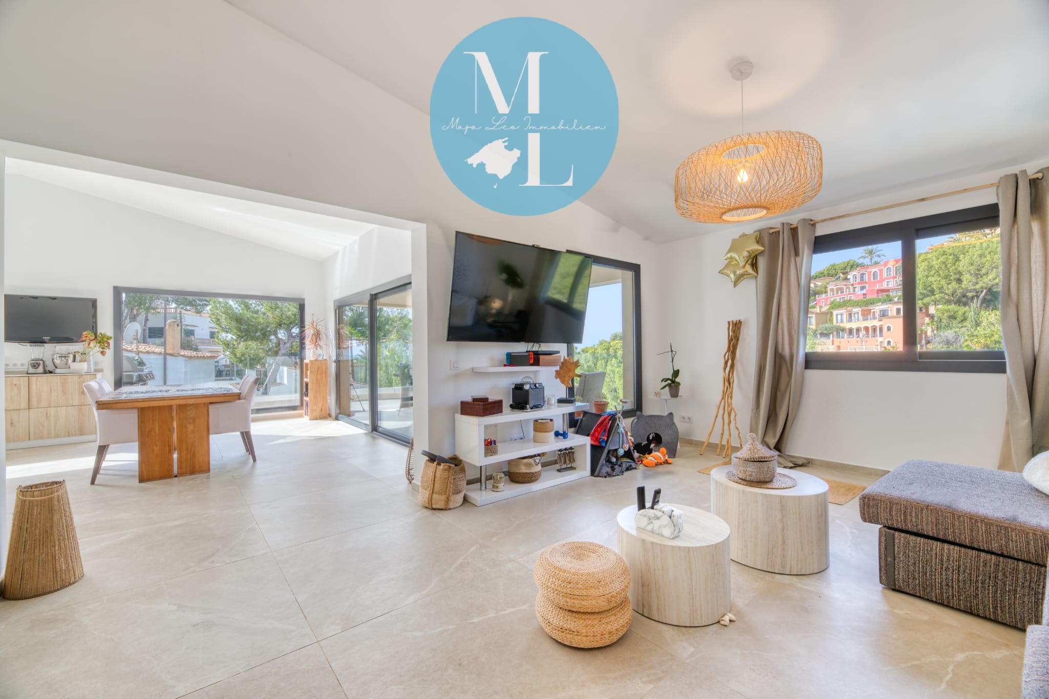 - Offener, heller Wohnbereich mit Zugang zu einer großen Terrasse – ideal für entspannte Stunden im Freien
