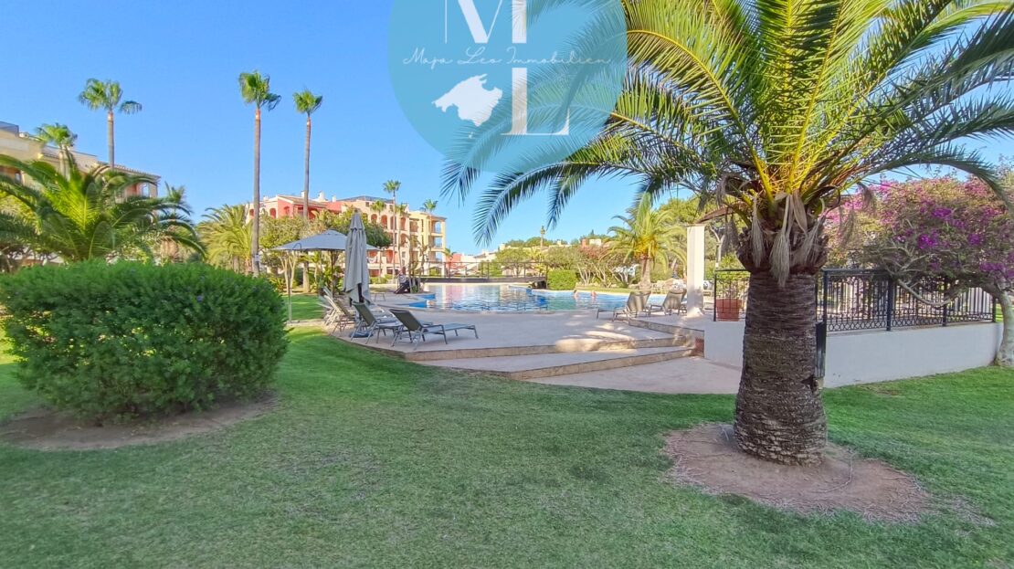 Destaca especialmente el jardín privado cuidadosamente ajardinado con plantas mediterráneas: un oasis verde, paz y relajación. El complejo residencial también ofrece una piscina comunitaria, que puede ser utilizada por los residentes y redondea la sensación de vacaciones a la perfección.