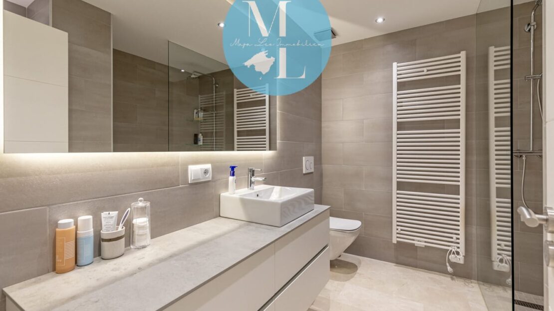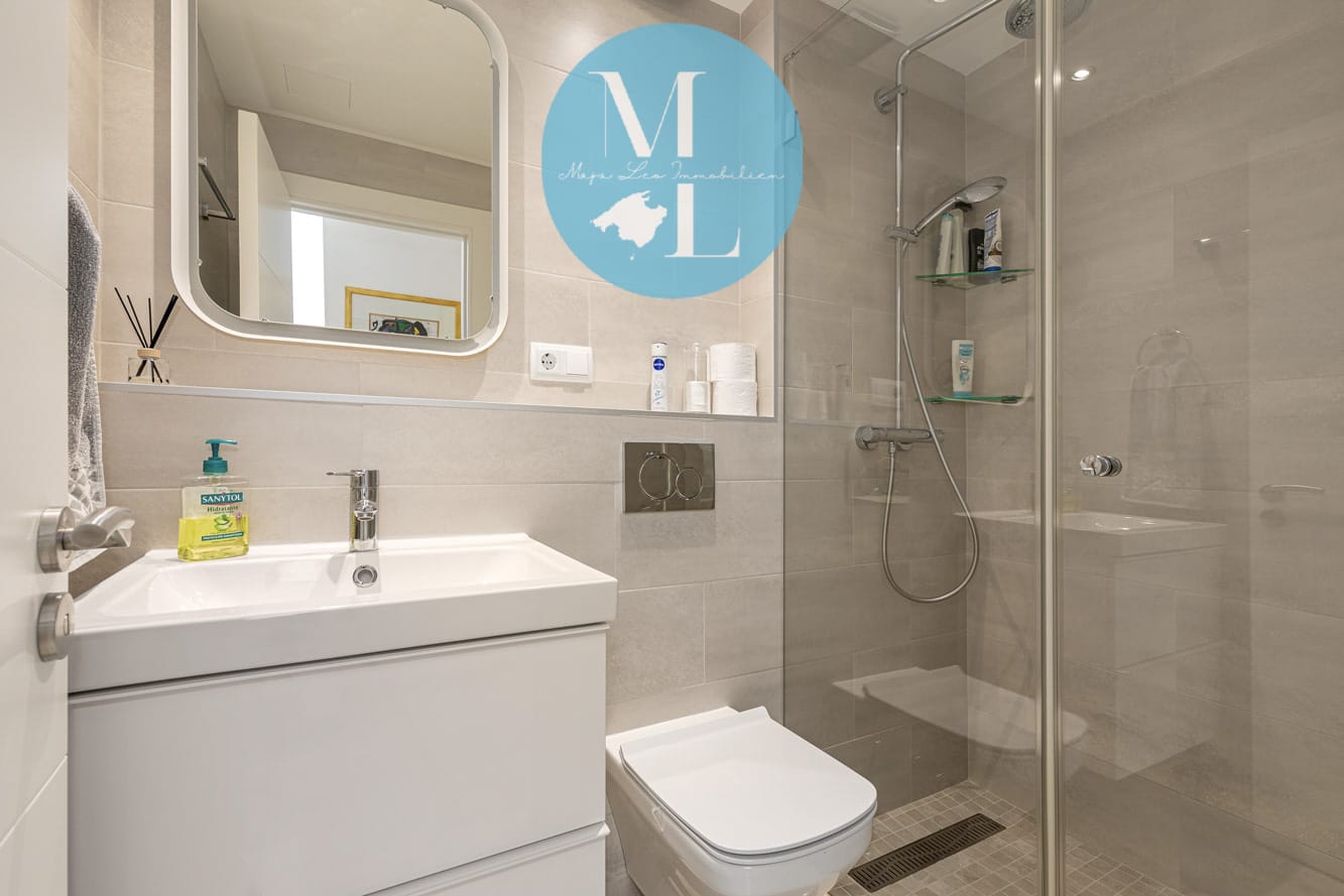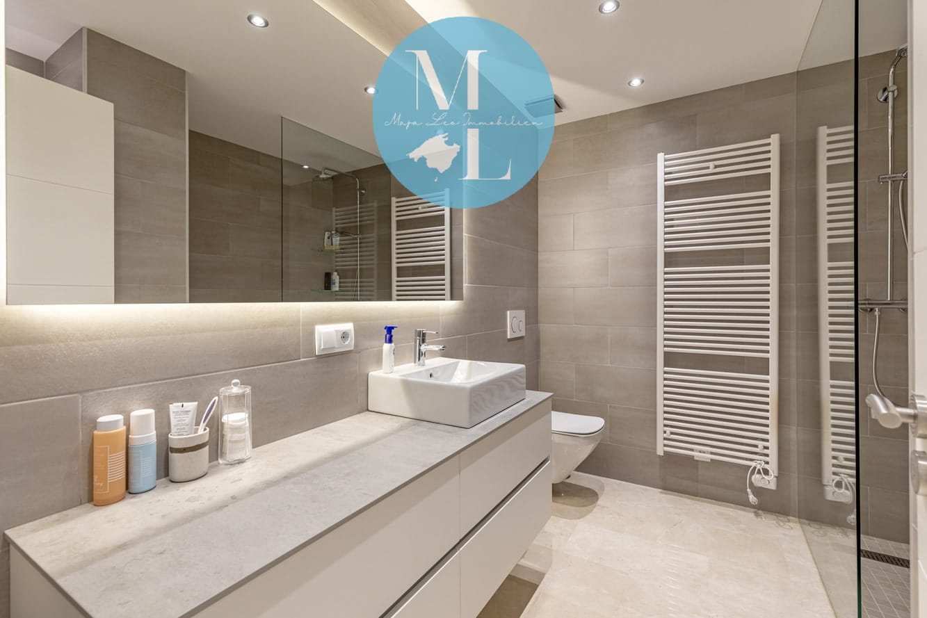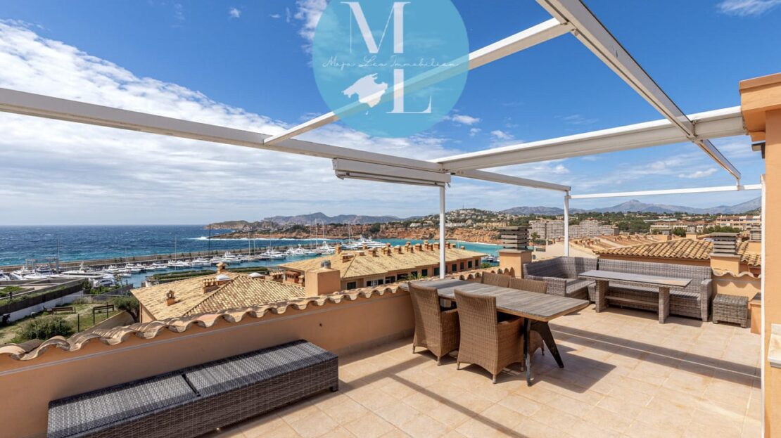 Ein besonderes Highlight dieses Penthouses ist die weitläufige, private Dachterrasse. Von hier eröffnet sich ein traumhafter Blick auf das Meer und den Yachthafen Port Adriano – ideal für entspannte Stunden unter der Sonne Mallorcas oder stilvolle Abende mit Familie und Freunden.