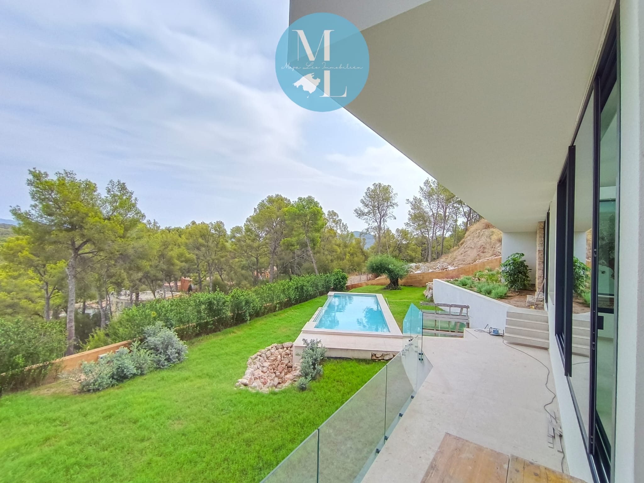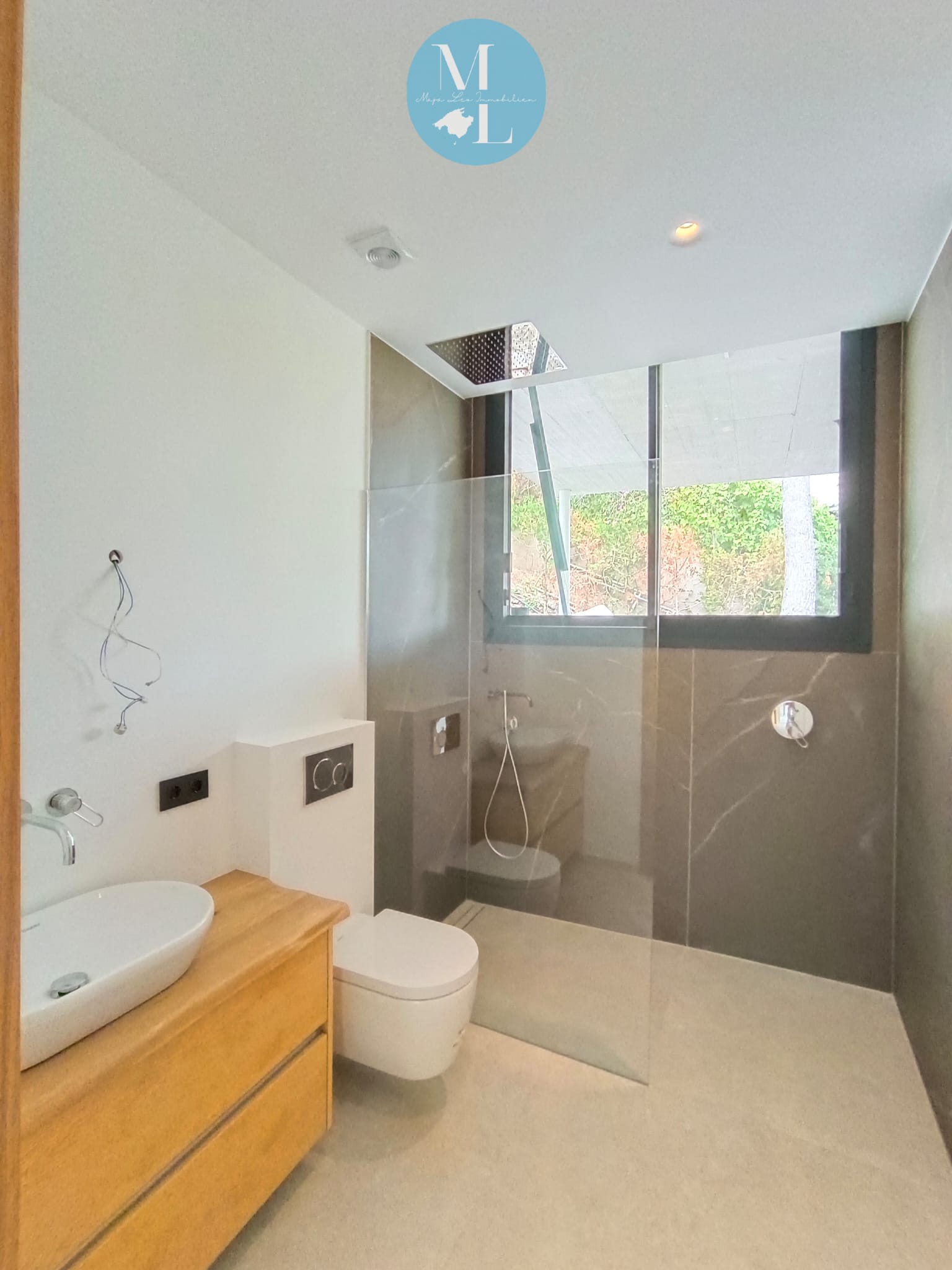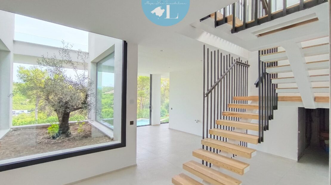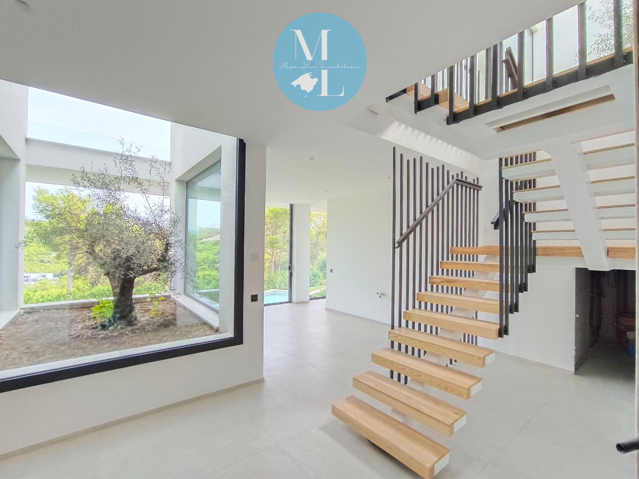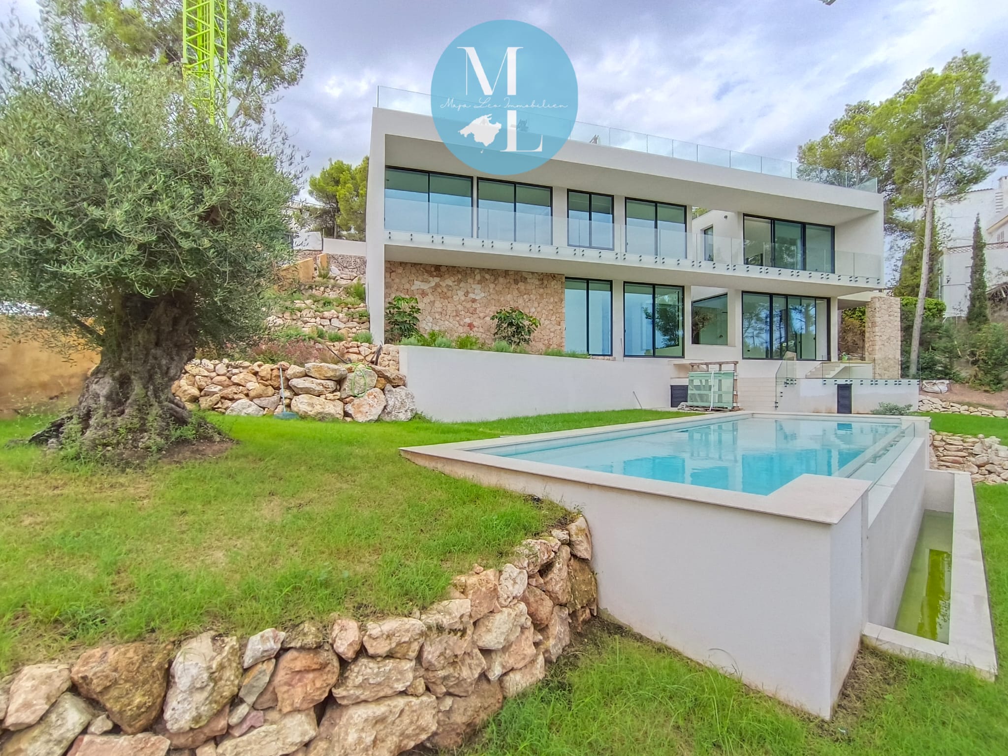 Esta exclusiva villa de lujo de nueva construcción en Santa Ponça, cuya finalización está prevista para el segundo semestre de 2025, combina un diseño moderno, la máxima calidad de construcción y una ubicación de primera clase en el codiciado suroeste de Mallorca. Con una generosa superficie habitable de 345 m² y un solar de 1.158 m², ofrece un lujoso confort de vida para las más altas exigencias. Totalmente amueblado a petición por un suplemento.